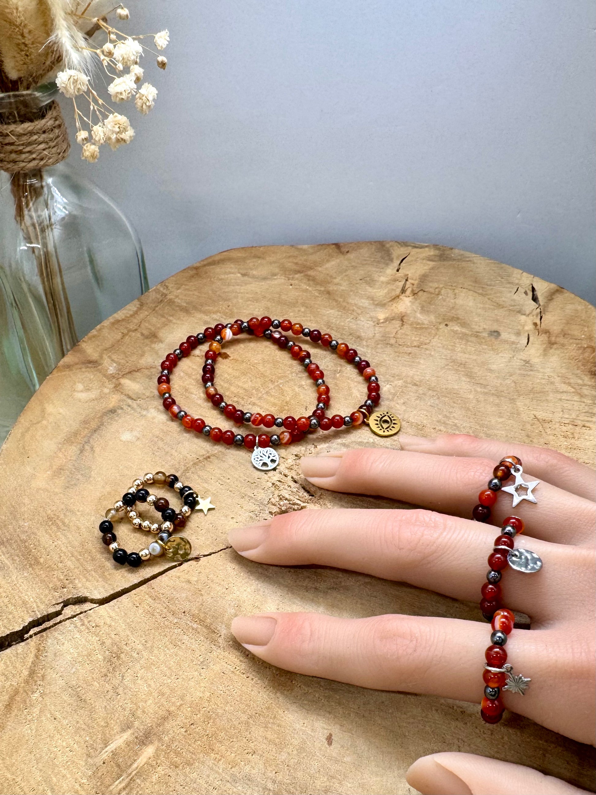 Collection de bijoux élastiques, bracelets et bagues élastiques en Agate Rouge & Marron